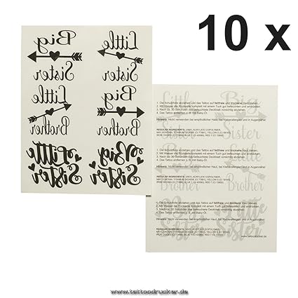 Amazon Com 10 Tarjetas De Tatuaje Para Hermanos Tamano Grande Pequeno Color Negro Beauty