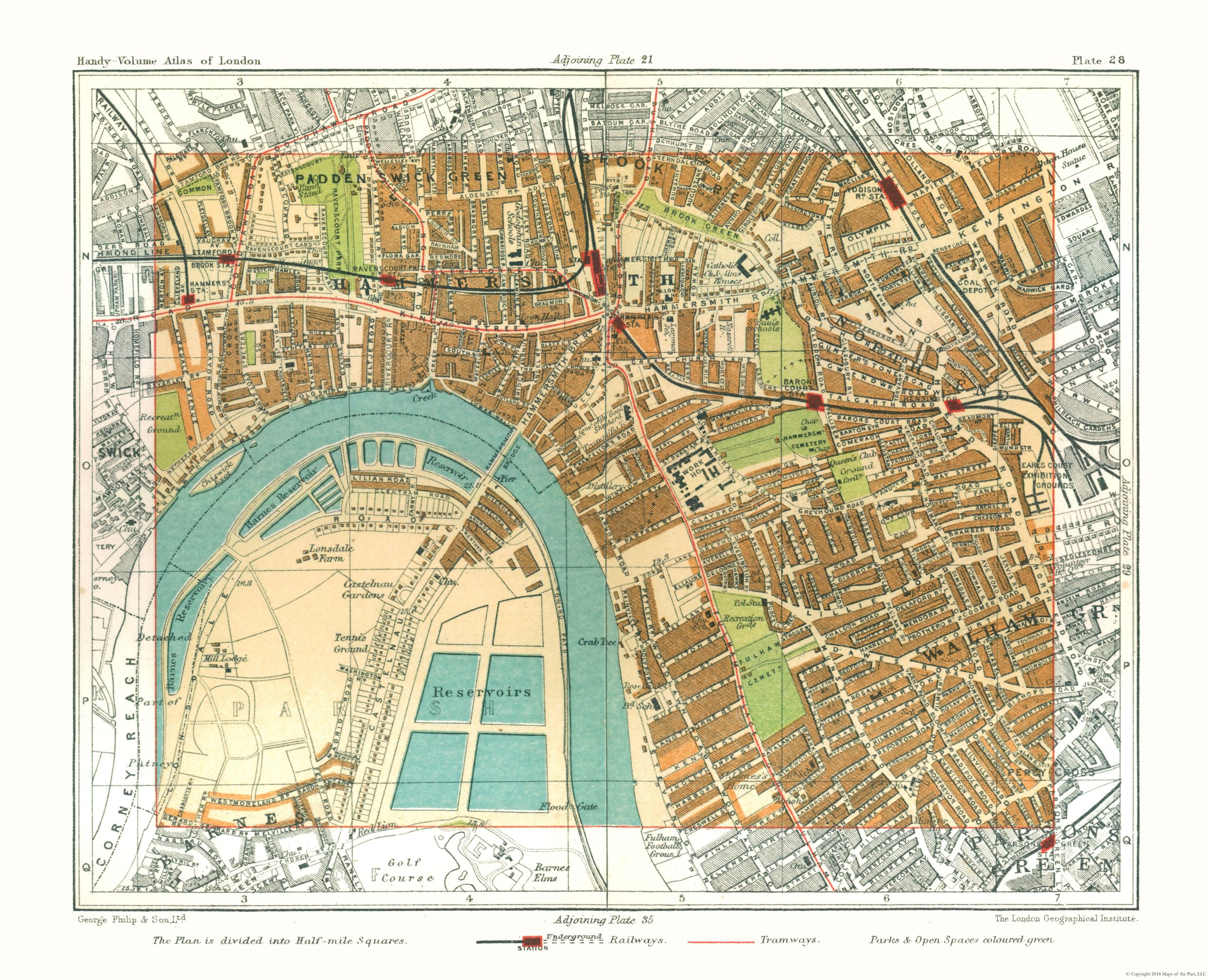 An Old Map Of The Hammersmith Kensington Area London In 1908 As An Instant Download And Large Format Print